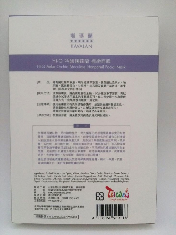 KAVALAN HI-Q Anka Orchid Maculate Nonpareil Facial Mask