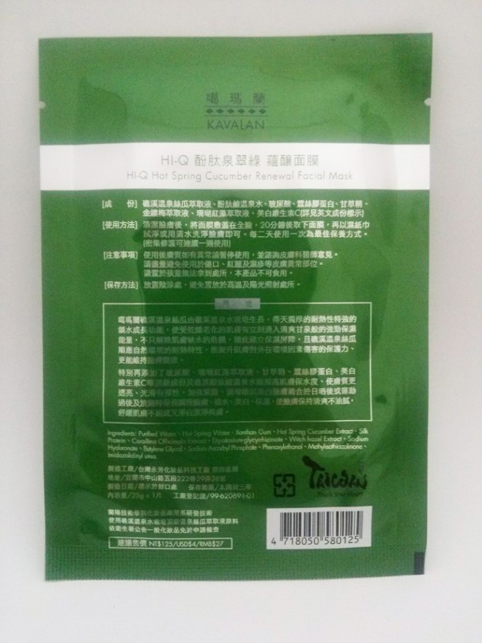 KAVALAN HI-Q Hot Spring Cucumber Renewal Facial Mask