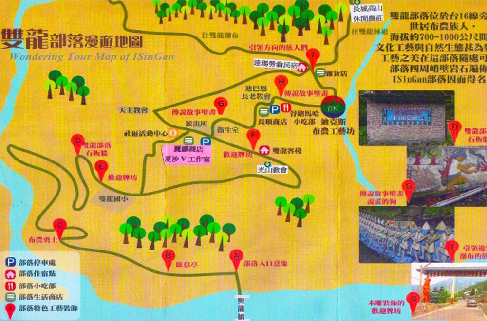 民宿環境:穿過紅磚的寬敞前庭,和煦的陽光透過樹葉縫隙灑落身旁,搭配一目了然的遼闊綠意,令人心曠神怡~這就是與自然結合的小清新!來到雙龍,您除了可以到周邊的熱門景點探索旅遊外,還可以預約八部合音,感受天籟之聲的美妙;更可以用自然無雜質的山泉水來泡茶,享受水的甘甜味;沿著山區蜿蜒小路探索雙龍部落,這裡充滿純樸的人情味。