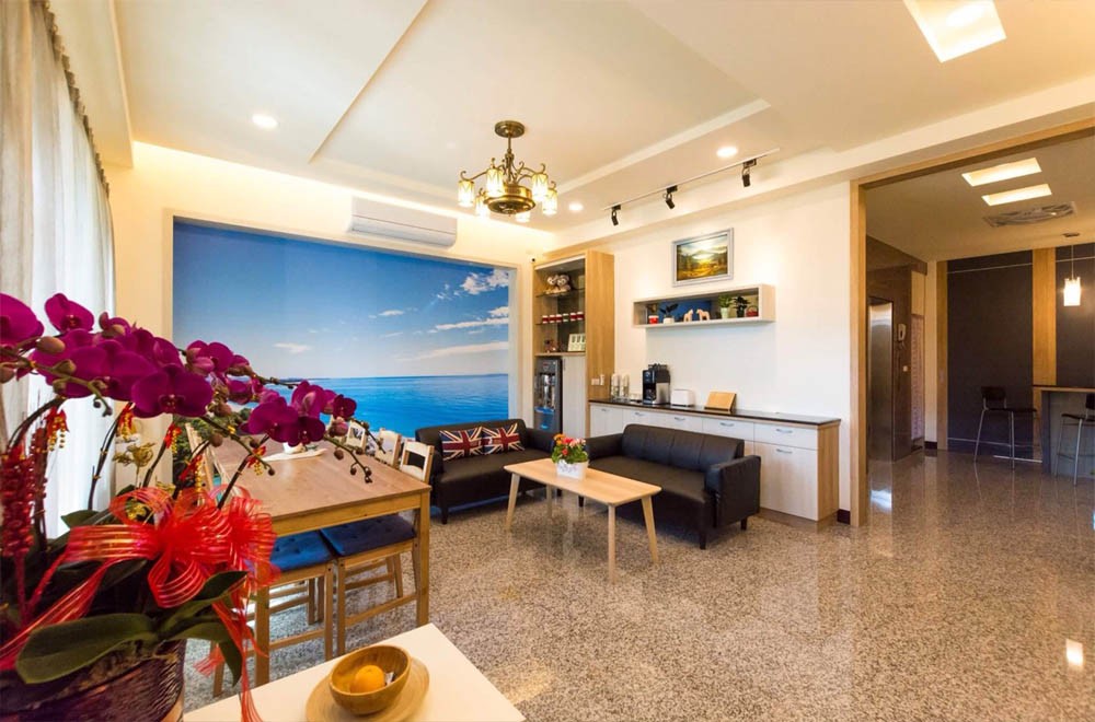 雙床兩人房可看客人意願,合併或分開兩相宜,豪華四人房則適合一般家庭,外有陽台,窗明几淨,色彩明亮,沒有太多的無謂裝飾,走的是簡約的風格,房內有免費wifi,舒適的空調,還附有茶包、咖啡包、熱水壺,浴室有充足的洗浴用品、吹風機,讓客人不虞物品的匱乏。